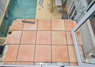 Many older balcony floors installed before the 1990s used asbestos in vinyl tiles, cement sheets, waterproofing membranes, or adhesive compounds.